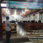 Rejang Lebong – Personel Polsek Sindang Kelingi Polres Rejang Lebong Polda Bengkulu, melaksanakan kegiatan pengamanan ibadah Minggu di Gereja Fransiskus Asisi di