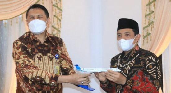 Bengkulu, Siberindo.co – Regional CEO Sumatera Region PT Garuda Indonesia Ngakan Swptigraha didampingi GM Garuda Indonesia Branch Officer Bengkulu Kun Riana Aplika