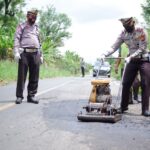 Jelang Idul Fitri, Satlantas Polres Rejang Lebong Perbaiki Jalan Rusak