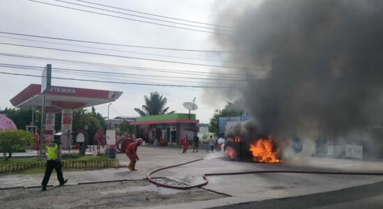 Bengkulu, Siberindo.co – Sebuah mobil minibus terbakar di SPBU Padang Jati, Jalan S Parman Kecamatan Ratu Agung Kota Bengkulu, Sabtu (13/3/2021) siang,