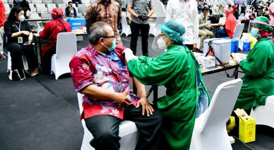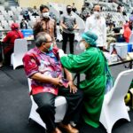 Bengkulutoday.com -Presiden Joko Widodo meninjau pelaksanaan vaksinasi massal yang diperuntukkan bagi para SDM di sektor kesehatan. Vaksinasi massal tersebut digelar di Istora Gelora
