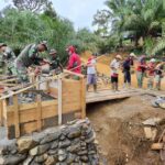 Bengkulu. Siberindo.co – Pengerjaan pembuatan jembatan pada program TNI Manunggal Membangun Desa (TMMD) ke-114 di Desa Suka Mulya Kecamatan Giri Mulya Kabupaten