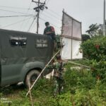 Mempawah – Babinsa Koramil 1201-05/Toho Serda Sawalludin memasang spanduk larangan bakar hutan dan lahan di Desa Pentek Kecamatan Toho Kabupaten Mempawah, Sabtu