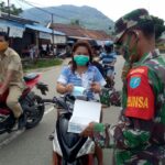Landak – Pasca Bapantang Balala Nagari, Koramil 1201-09/Sengah Temila mengecek aktifitas warga dalam Pemberlakuan Pembatasan Kegiatan Masyarakat (PPKM) di Pasar Pahauman. Menurut