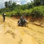 Landak – Kondisi jalan yang rusak parah tidak menyurutkan semangat Serda Kholil, Babinsa Koramil 1201-11/Ngabang untuk anjangsana ke Desa Sekais binaannya. Dia