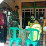 Mempawah – Anggota Koramil 1201-10/Sungai Pinyuh Serka Junus Butar Butar melaksanakan pengecekan Posko Terpadu Pemberlakuan Pembatasan Kegiatan Masyarakat (PPKM) skala Mikro di