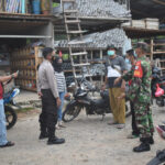 Mempawah – Anggota Koramil 02/Sungai Pinyuh Serda Kusmantoro bersama Bhabinkamtibmas melaksanakan patroli keamanan untuk memantau kepatuhan masyarakat terhadap protokol kesehatan di Pasar