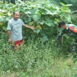 Landak-Babinsa koramil 06/Menjalin Sertu Winoto melaksanakan pendampingan kepada Zainal(54) seorang petani penbudidaya labu di Dusun Sepahat Kecamatan Menjalin Kabupaten Landak,Sabtu(19/6/2021). Sertu Winoto