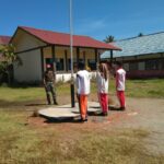 Mempawah – Bala Pembina Desa (Babinsa) Koramil 1201-04/Sungai Kunyit, Serda Hamdani memberikan pelatihan Tata Upacara Bendera (TUB) kepada murid SMAN (SMA 01)