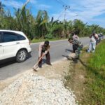 Prihatin Kondisi Jalan Rusak, Babinsa Sungai Kunyit Bersama waraga Perbaiki Jalan
