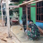 PURUK CAHU – Bintara pembina desa (Babinsa) Koramil 1013-08/Muara Laung Kodim 1013/Mtw Pratu Rio Sandi dan Pratu Anwar Sadat bantu masyarakat wilayah