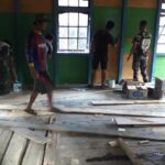 MURUNG RAYA – Anggota Koramil 09/Tumbang Laung beserta masyarakat desa binaannya melaksanakan kegiatan karya bakti melanjutkan pembangunan Pura, Desa Tumbang Bana ,