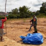 BARITO UTARA – Anggota Koramil 1013-02/Montallat mendampingi warga dalam pengukuran tanah untuk dibuat Sertifikat tanah bertempatan di Desa Pepas Kecamatan Tumpung Laung