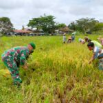 BARITO UTARA – Serda Abdulah Babinsa desa Payang Ara melakukan pendampingan kepada para petani di desa Payang Ara dengan terjun langsung ke