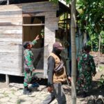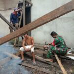 Ringankan Beban Warga, Babinsa Koramil 12/Air Besar Bantu Bangun Dapur