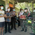 Mempawah – Personil Koramil Sungai Pinyuh mendampingi perangkat desa menyalurkan bantuan sembako untuk satu keluarga yang sedang menjalani isolasi mandiri di Desa