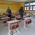 Landak – Koramil 1201-08/Mandor bersilaturahmi sekaligus memantau kesiapan sarana prasarana protokol kesehatan (Prokes) di SMAN 1 Mandor, Kabupaten Landak, Rabu (3/6/2021). Danramil
