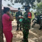Mempawah – Babinsa Koramil 1201-02/Sungai Pinyuh, Serda Agustiari bersama petugas kesehatan dari Puskesmas Sungai Pinyuh melakukan contact tracing di Desa Sungai Pinyuh, Kecamatan Sungai