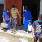 Landak – Babinsa Koramil 12/Air Besar, Serda Lipsin bersama Bhabinkamtibmas mendampingi perangkat desa menyalurkan bantuan berupa sembako kepada masyarakat yang terpapar Covid-19