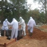 Landak – Babinsa Koramil 1201-11/Ngabang Serda Kholil Khambali, mengawal ketat terhadap pemakaman masyarkat yang meninggal karena terpapapar Covid-19 di Kecamatan Ngabang, Kabupaten