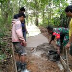 Babinsa Koramil Air Besar Bantu Pembuatan Jalan Rabat Beton