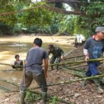 Kemanunggalan TNI dan Rakyat,Babinsa Gotong Royong Buat Jembatan Darurat