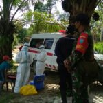 Landak – Babinsa Koramil 1201-07/Mempawah Hulu, Serda Simon mendampingi tenaga kesehatan Puskesmas Sompak melakukan tes swab warga Dusun Pauh Bale, Desa Pakumbang,
