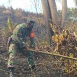 Lahan Terbakar di Desa Simpang Kasturi, Koramil Mandor Padamkan Api