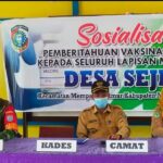 Mempawah – Babinsa 1201-03/Mempawah Hilir, Serma Supriadi mendampingi tim sosialisasi vaksin Covid-19 dari Puskesmas Antibar di Desa Sejegi, Kecamatan Mempawah Timur, Selasa