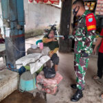 Mempawah – Anggota Koramil 1201-04/Sungai Kunyit Serda Hamdani membagikan masker gratis bagi pedagang dan masyarkat Desa Semudun, Kecamatan Sungai Kunyit, Kabupaten Mempawah,