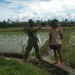 Landak – Babinsa Koramil 1201-06/Menjalin, Serda Barus melaksanakan komunikasi sosial (Komsos) sekaligus melakukan pendampingan kepada petani padi di Dusun Sungai Bandung, Kecamatan