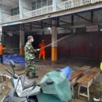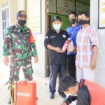 Mempawah – Koramil 1201-04/Sungai Kunyit bersama Satgas Covid-19 melaksanakan penyemprotan disinfektan di salah satu pasar di Kecamatan Sungai Kunyit, Kabupaten Mempawah, Sabtu