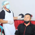 Landak – Danramil 1201-12/Air Besar, Peltu Lontas Bangun mendampingi Satgas Covid-19 Kecamatan Kuala Behe melaksanakan tes swab PCR terhadap sejumlah karyawan perusahaan