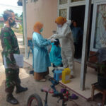 Mempawah – Babinsa 1201-03/Mempawah Hilir, Serda Cahyo Eko Widodo melaksanakan pendampingan tim tracer kesehatan Bakau Kecil mengecek warga yang terkonfirmasi Covid-19 di