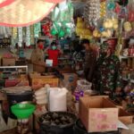 Landak – Babinsa Koramil Air Besar , Sertu Sayid Almie menunjukkan kepeduliannya dengan membagikan masker geratis kepada masyarakat di Pasar Serimbu Kecamatan