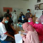 Mempawah – Babinsa Koramil 01/Jungkat, Serda Bambang mendampingi para pekerja PT Arwana untuk melakukan suntik vaksin di kantor PT Arwana air minum