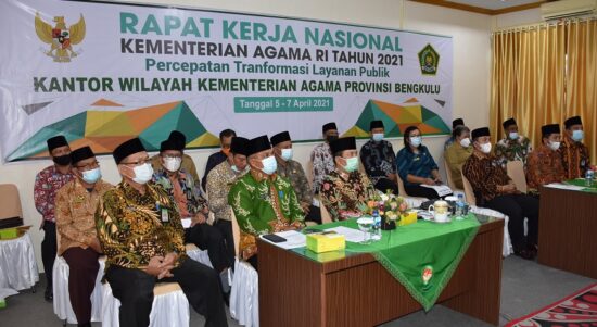 Bengkulu, Siberindo.co – Kakanwil Drs H Zahdi Taher M.HI berserta jajaran Kemenag se-Provinsi Bengkulu menghadiri Rapat Kerja Nasional (Rakernas) 2021, yang digelar