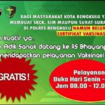Bengkulu, Siberindo.co – Rumah Sakit Bhayangkara Bengkulu kembali menggelar Vaksinasi Covid-19 secara gratis. Vaksin kali ini diperuntukkan bagi masyarakat umum. Kabid Humas
