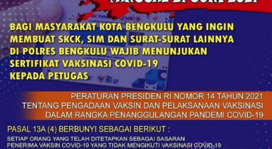 Bengkulu, Siberindo.co – Kepolisian Resor Bengkulu mengeluarkan kebijakan baru bagi masyarakat yang ingin membuat atau memperpanjang SIM dan SKCK. Salah satu syarat