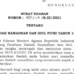 Bengkulu, Siberindo.co – Wali Kota Bengkulu Helmi Hasan telah mengeluarkan surat edaran (SE) tentang panduan ibadah Ramadhan dan Idul Fitri tahun 1442
