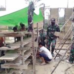 Satgas Pamtas Yonif 407/PK Bersama Warga Gotong Royong Bangun Gereja GEREA
