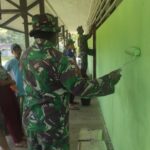 Peduli Akan Sarana Pendidikan Satgas Pamtas Yonif 407/PK Bantu Pengecetan SD