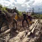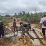 Satgas Pamtas Yonif 407/PK Bersama Warga Gotong Royong Perbaiki Akses Jalan