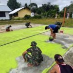 Tingkatkan Gemar Olahraga Warga Perbatasan, Satgas Yonif 407/PK Bersama Warga Rehab Lapangan Voli