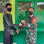 Satgas Pamtas RI – MLY Yonif 407/Padmakusuma Pos Kantuk Asam menerima penyerahan satu pucuk senjata jenis Lantak dari warga Desa Kantuk Asam