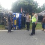 Bengkulu – Mobil tanki BBM jenis bernopol BE 8612 AAU yang dikemudikan Sopir Agus Heriyanto, terguling di Jalan Raya Desa Tanjung Pandan