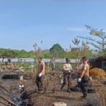 Lebong – Kapolsek Lebong Atas Polres Lebong Polda Bengkulu Iptu Ali Khan, memimpin langsung kegiatan gotong royong membersihkan bekas kebakaran asrama putri