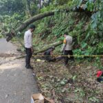 Gotong Royong Personel Polsek Air Besi Bersama Warga Membersihkan Pohon Tumbang