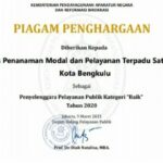 Bengkulu, Siberindo.co – Kementerian Pendayagunaan Aparatur Negara Reformasi Birokrasi (Kemenpan RB) memberikan penghargaan kepada Pemerintah Kota (Pemkot) Bengkulu melalui Dinas Penanaman Modal