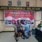 KOTA MANNA – Dalam mendukung program pemerintah untuk penanggulangan Covid-19, sebanyak 100 personil Polres Bengkulu Selatan (BS) melakukan suntik vaksin Covid-19. Pelaksanaan vaksinasi
